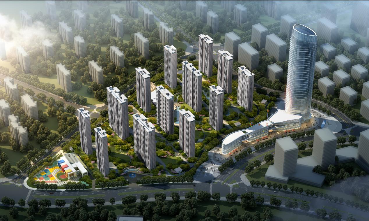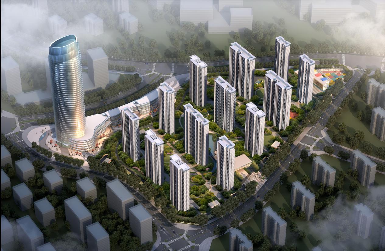 項(xiàng)目占地面積約209畝,總建筑面積約40萬方,容積率約2.8,綠化率達(dá)30%。本項(xiàng)目建筑設(shè)計(jì)遵循“以山水之蘊(yùn),天地之氣充盈其間,盡顯人文內(nèi)涵”的原則,整個(gè)項(xiàng)目由13棟住宅樓和1棟199米超高層寫字樓(金融中心)和2棟智創(chuàng)中心,1棟鄰里中心,1個(gè)9班雙語幼兒園組成。